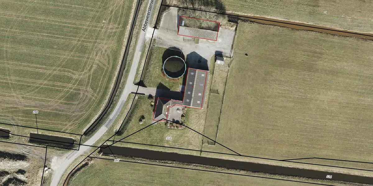 Het perceel waarop Abbeweersterweg 5 staat heeft een oppervlakte van 2,8 ha. Dit is een zeer groot perceel. De perceeloppervlakte wordt geregistreerd door het Kadaster. Gedetailleerde informatie over de maten van dit perceel kunt u vinden in het rapport Kadastrale kaart met maatvoering van Abbeweersterweg 5.