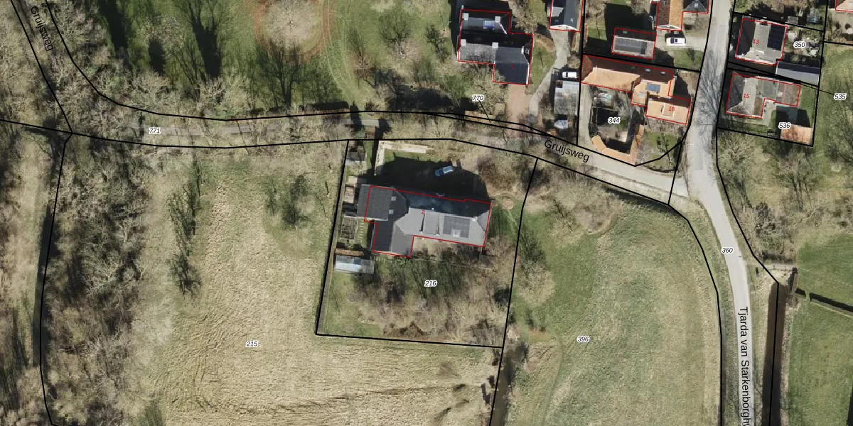 Gruijsweg 2 is gelegen op kadastraal perceel BLO00G216. Deze kadastrale aanduiding is uniek en wordt gebruikt door het Kadaster om eigendomsrechten en andere zakelijke rechten vast te leggen. Het perceel maakt onderdeel uit van de kadastrale gemeente Baflo.