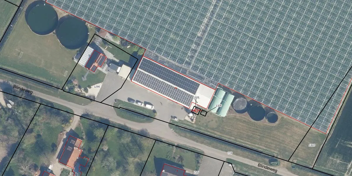 Het perceel waarop Blindeweg 3-a staat heeft een oppervlakte van 3,1 ha. Dit is een zeer groot perceel. De perceeloppervlakte wordt geregistreerd door het Kadaster. Gedetailleerde informatie over de maten van dit perceel kunt u vinden in het rapport Kadastrale kaart met maatvoering van Blindeweg 3-a.