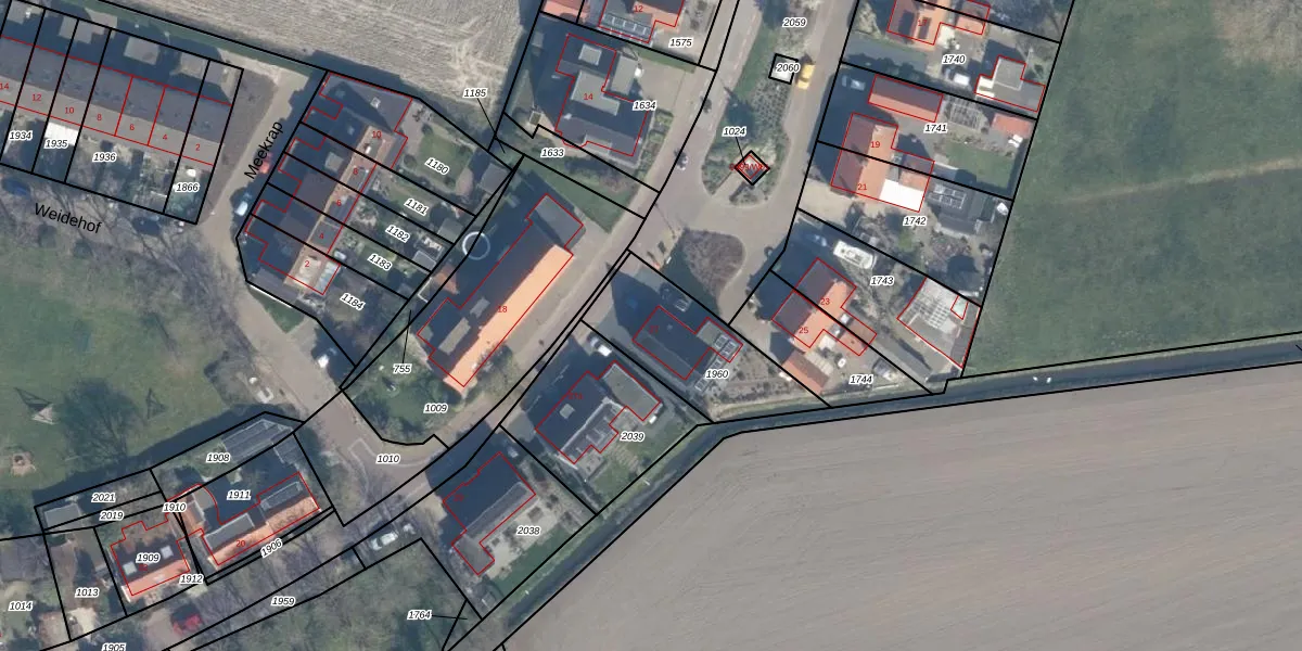 Gebruik de zoekbalk of klik op een perceel voor informatie over de adressen binnen dit perceel.