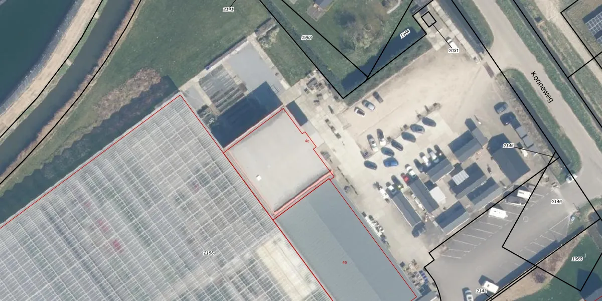 Het perceel waarop Konneweg 4-c staat heeft een oppervlakte van 2,4 ha. Dit is een zeer groot perceel. De perceeloppervlakte wordt geregistreerd door het Kadaster. Gedetailleerde informatie over de maten van dit perceel kunt u vinden in het rapport Kadastrale kaart met maatvoering van Konneweg 4-c.