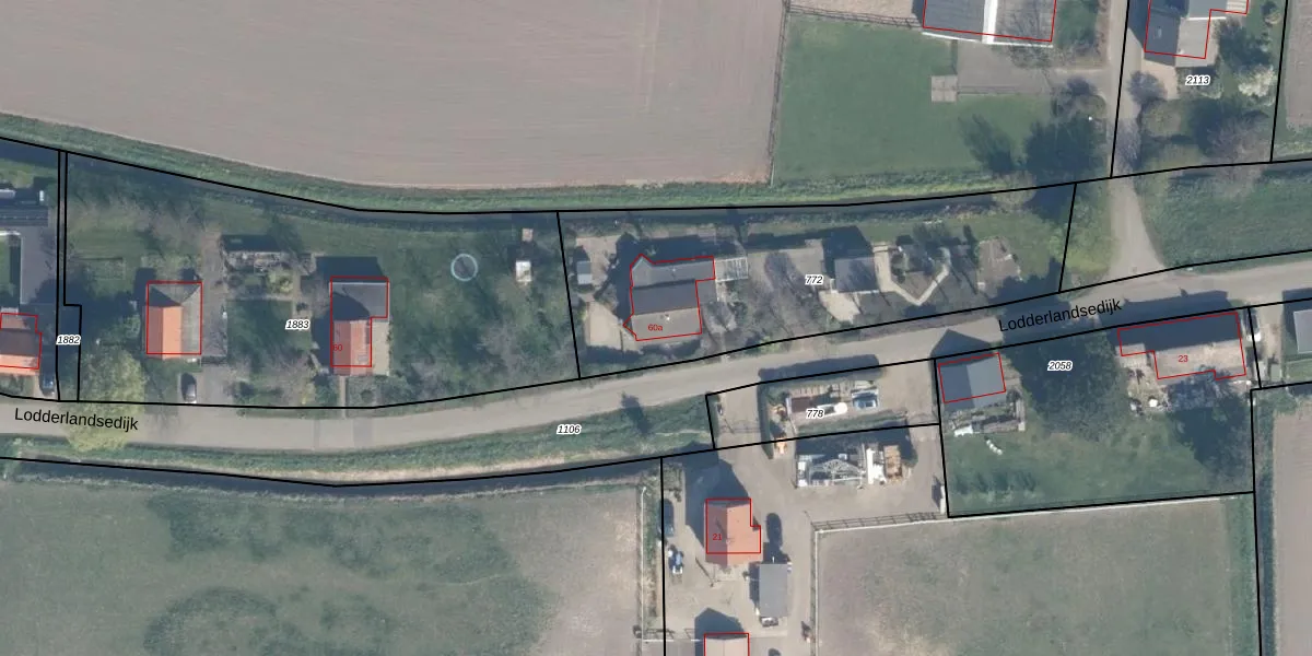 Het perceel waarop Lodderlandsedijk 60-a staat heeft een oppervlakte van 1550 m². Dit is een zeer groot perceel. De perceeloppervlakte wordt geregistreerd door het Kadaster. Gedetailleerde informatie over de maten van dit perceel kunt u vinden in het rapport Kadastrale kaart met maatvoering van Lodderlandsedijk 60-a.