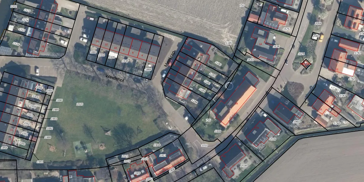 Gebruik de zoekbalk of klik op een perceel voor informatie over de adressen binnen dit perceel.