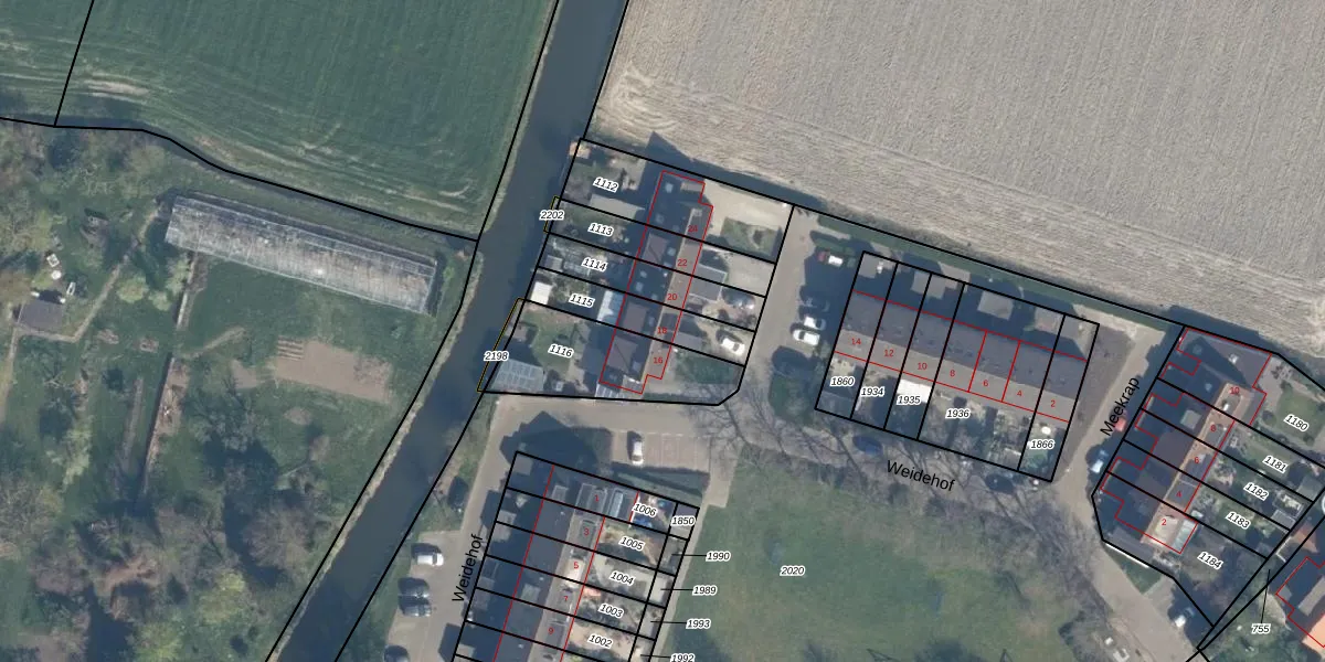Het perceel waarop Weidehof 18 staat heeft een oppervlakte van 187 m². Dit is een middelgroot perceel. De perceeloppervlakte wordt geregistreerd door het Kadaster. Gedetailleerde informatie over de maten van dit perceel kunt u vinden in het rapport Kadastrale kaart met maatvoering van Weidehof 18.