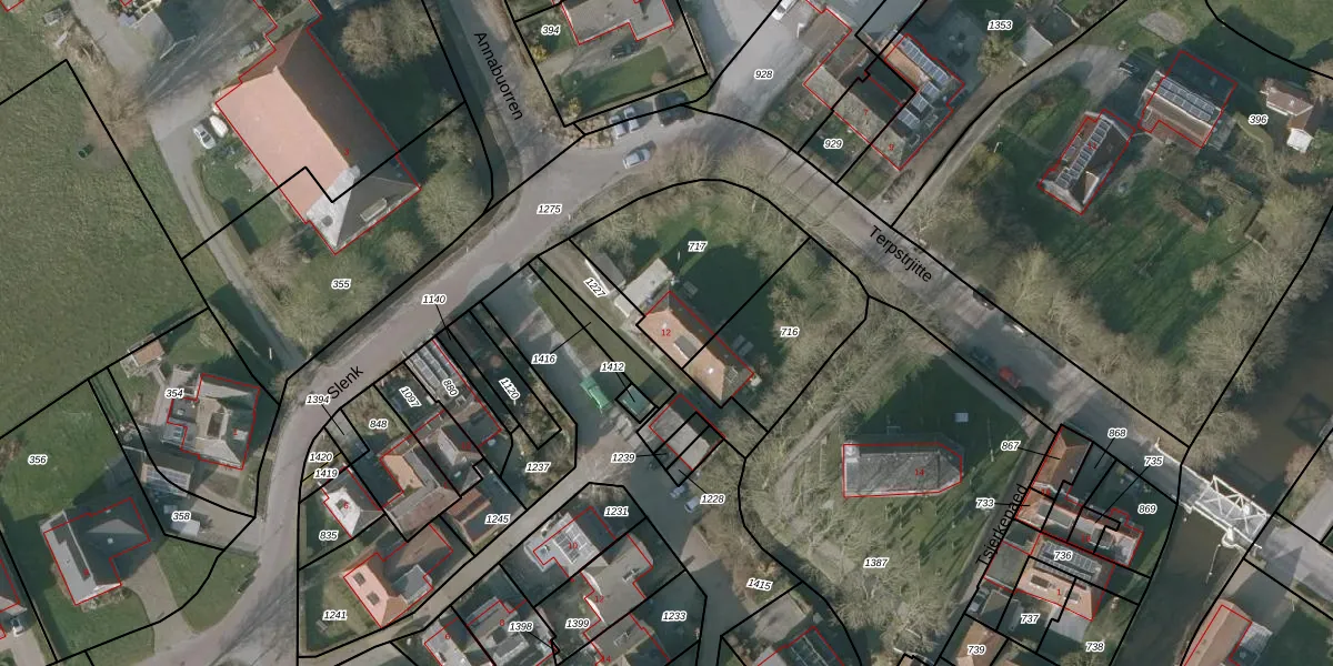 Terpstrjitte 12 is gelegen op kadastraal perceel NLD01B717. Deze kadastrale aanduiding is uniek en wordt gebruikt door het Kadaster om eigendomsrechten en andere zakelijke rechten vast te leggen. Het perceel maakt onderdeel uit van de kadastrale gemeente Nieuwland Friesland.