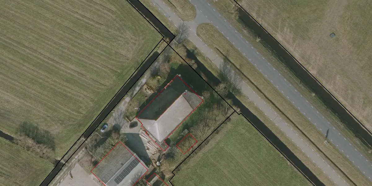 Het perceel waarop Strjitwei 9 staat heeft een oppervlakte van 5970 m². Dit is een zeer groot perceel. De perceeloppervlakte wordt geregistreerd door het Kadaster. Gedetailleerde informatie over de maten van dit perceel kunt u vinden in het rapport Kadastrale kaart met maatvoering van Strjitwei 9.