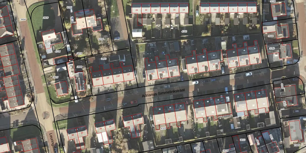 Adrianus Simmelinkstraat 21 is gelegen op kadastraal perceel LEE01H4702. Deze kadastrale aanduiding is uniek en wordt gebruikt door het Kadaster om eigendomsrechten en andere zakelijke rechten vast te leggen. Het perceel maakt onderdeel uit van de kadastrale gemeente Leek.