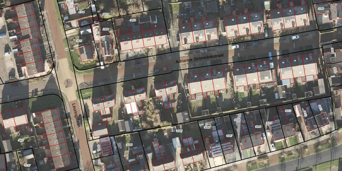 Adrianus Simmelinkstraat 22 is gelegen op kadastraal perceel LEE01H4703. Deze kadastrale aanduiding is uniek en wordt gebruikt door het Kadaster om eigendomsrechten en andere zakelijke rechten vast te leggen. Het perceel maakt onderdeel uit van de kadastrale gemeente Leek.