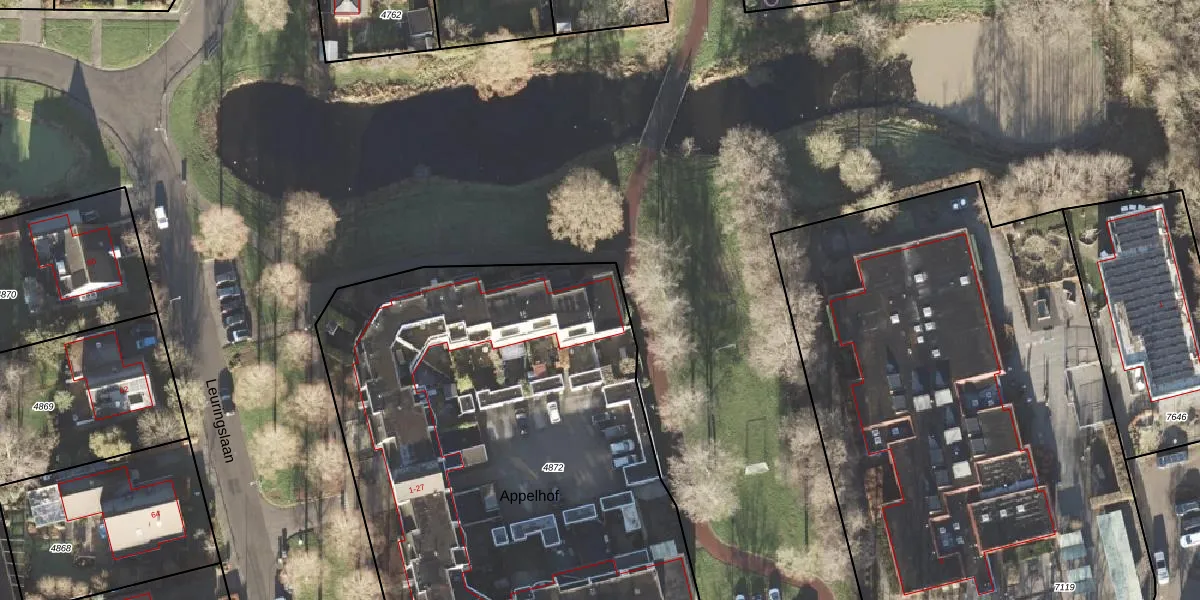 Appelhof 1 is gelegen op kadastraal perceel LEE01H4872. Deze kadastrale aanduiding is uniek en wordt gebruikt door het Kadaster om eigendomsrechten en andere zakelijke rechten vast te leggen. Het perceel maakt onderdeel uit van de kadastrale gemeente Leek.