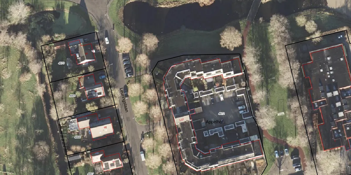 Appelhof 10 is gelegen op kadastraal perceel LEE01H4872. Deze kadastrale aanduiding is uniek en wordt gebruikt door het Kadaster om eigendomsrechten en andere zakelijke rechten vast te leggen. Het perceel maakt onderdeel uit van de kadastrale gemeente Leek.