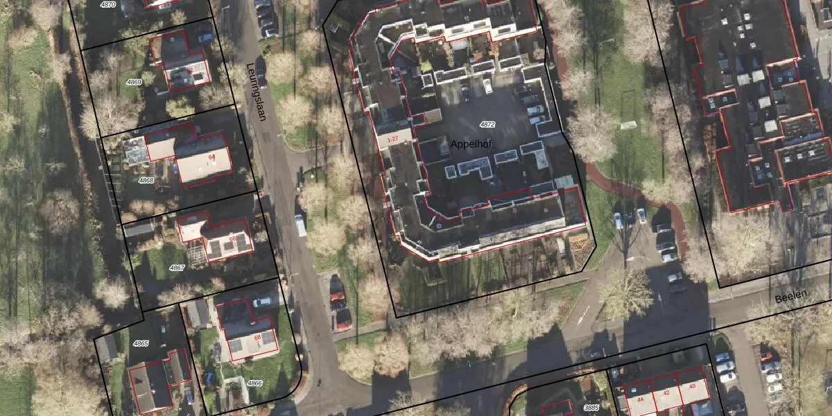 Appelhof 19 is gelegen op kadastraal perceel LEE01H4872. Deze kadastrale aanduiding is uniek en wordt gebruikt door het Kadaster om eigendomsrechten en andere zakelijke rechten vast te leggen. Het perceel maakt onderdeel uit van de kadastrale gemeente Leek.