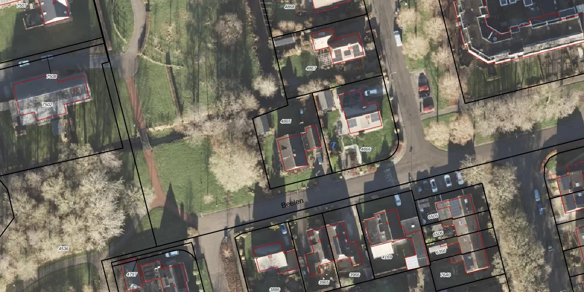 Gebruik de zoekbalk of klik op een perceel voor informatie over de adressen binnen dit perceel.