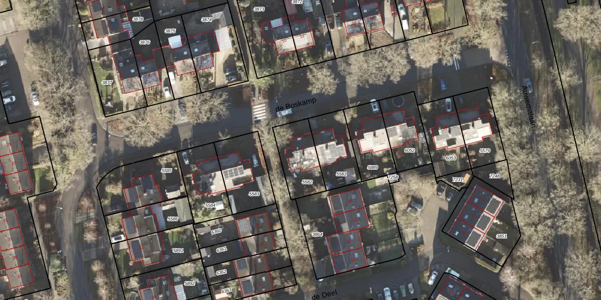 Het perceel waarop de Boskamp 5 staat heeft een oppervlakte van 303 m². Dit is een groot perceel. De perceeloppervlakte wordt geregistreerd door het Kadaster. Gedetailleerde informatie over de maten van dit perceel kunt u vinden in het rapport Kadastrale kaart met maatvoering van de Boskamp 5.