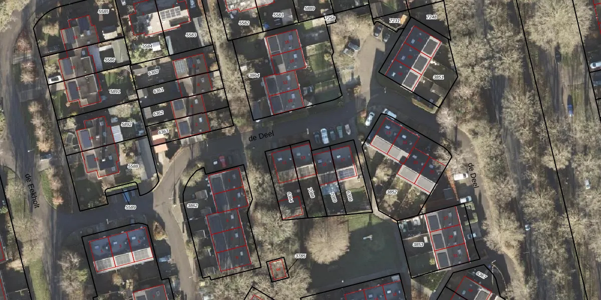 Gebruik de zoekbalk of klik op een perceel voor informatie over de adressen binnen dit perceel.