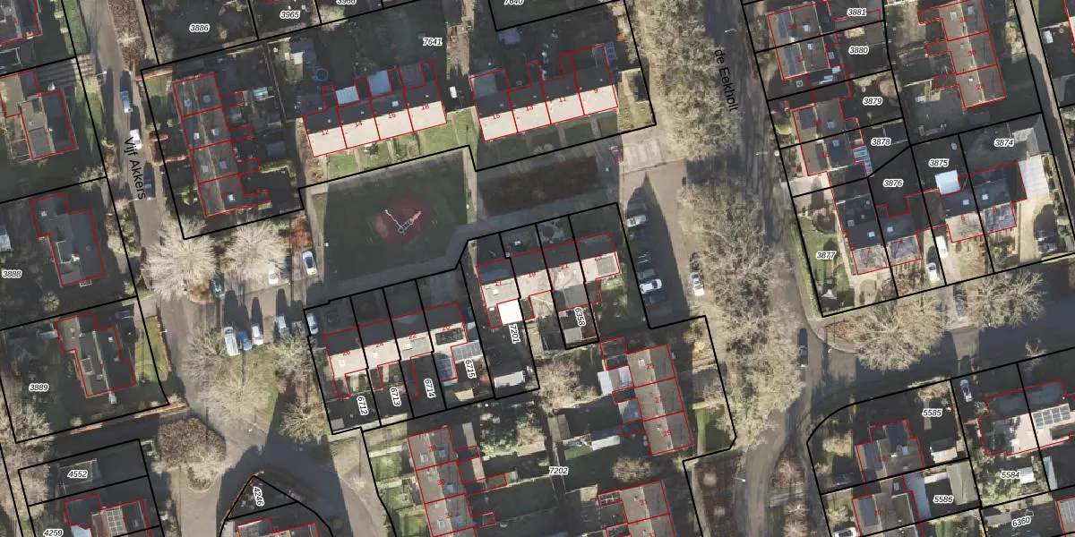 Het perceel waarop de Eekholt 19 staat heeft een oppervlakte van 3215 m². Dit is een zeer groot perceel. De perceeloppervlakte wordt geregistreerd door het Kadaster. Gedetailleerde informatie over de maten van dit perceel kunt u vinden in het rapport Kadastrale kaart met maatvoering van de Eekholt 19.