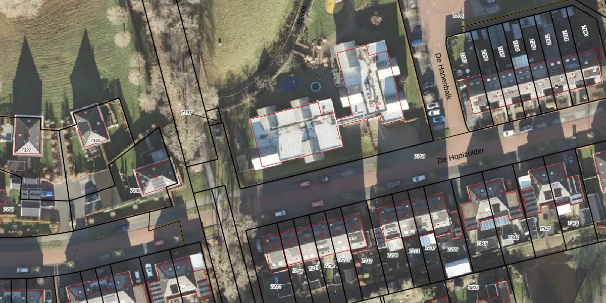 De Hooizolder 23-e is gelegen op kadastraal perceel LEE01H7169. Deze kadastrale aanduiding is uniek en wordt gebruikt door het Kadaster om eigendomsrechten en andere zakelijke rechten vast te leggen. Het perceel maakt onderdeel uit van de kadastrale gemeente Leek.