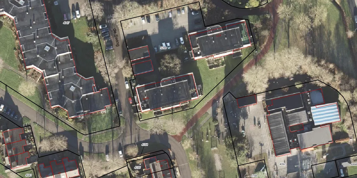 Het perceel waarop de Swing 41 staat heeft een oppervlakte van 3176 m². Dit is een zeer groot perceel. De perceeloppervlakte wordt geregistreerd door het Kadaster. Gedetailleerde informatie over de maten van dit perceel kunt u vinden in het rapport Kadastrale kaart met maatvoering van de Swing 41.