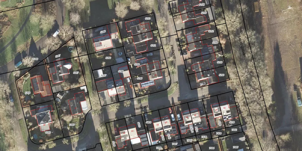 Het perceel waarop Heihorst 31 staat heeft een oppervlakte van 342 m². Dit is een groot perceel. De perceeloppervlakte wordt geregistreerd door het Kadaster. Gedetailleerde informatie over de maten van dit perceel kunt u vinden in het rapport Kadastrale kaart met maatvoering van Heihorst 31.