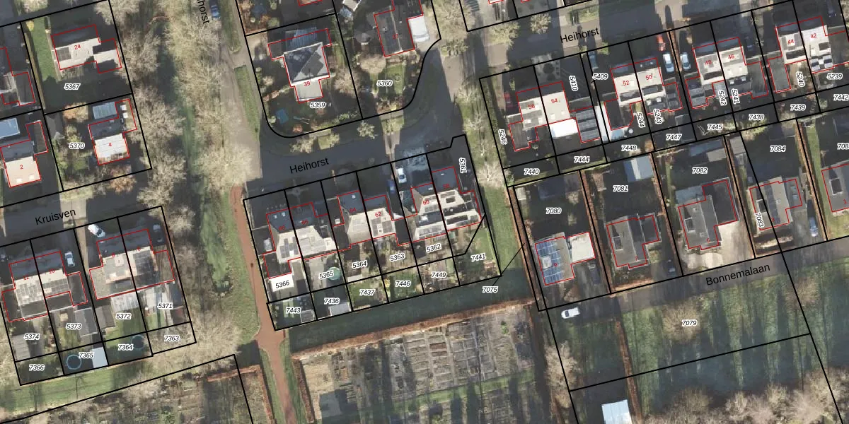Gebruik de zoekbalk of klik op een perceel voor informatie over de adressen binnen dit perceel.