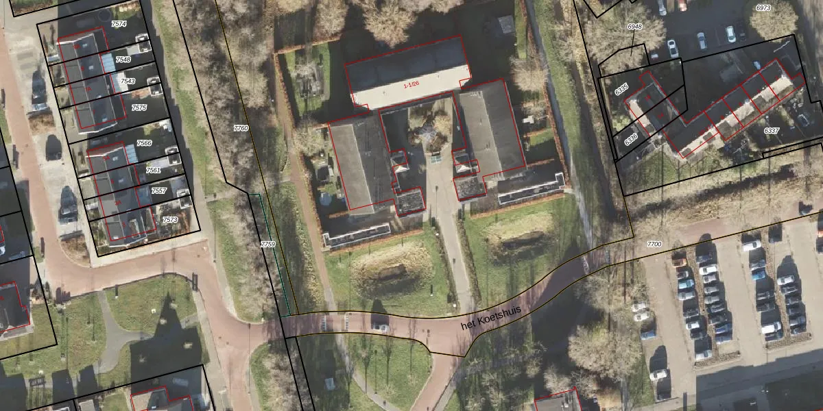 het Koetshuis 1-25 is gelegen op kadastraal perceel LEE01H7698. Deze kadastrale aanduiding is uniek en wordt gebruikt door het Kadaster om eigendomsrechten en andere zakelijke rechten vast te leggen. Het perceel maakt onderdeel uit van de kadastrale gemeente Leek.