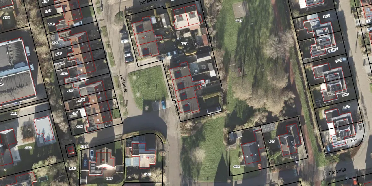Het perceel waarop Hofstede 44 staat heeft een oppervlakte van 2030 m². Dit is een zeer groot perceel. De perceeloppervlakte wordt geregistreerd door het Kadaster. Gedetailleerde informatie over de maten van dit perceel kunt u vinden in het rapport Kadastrale kaart met maatvoering van Hofstede 44.