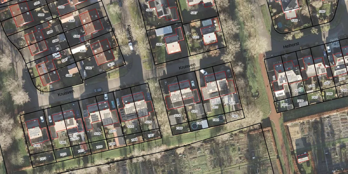 Kruisven 12 is gelegen op kadastraal perceel LEE01H5374. Deze kadastrale aanduiding is uniek en wordt gebruikt door het Kadaster om eigendomsrechten en andere zakelijke rechten vast te leggen. Het perceel maakt onderdeel uit van de kadastrale gemeente Leek.