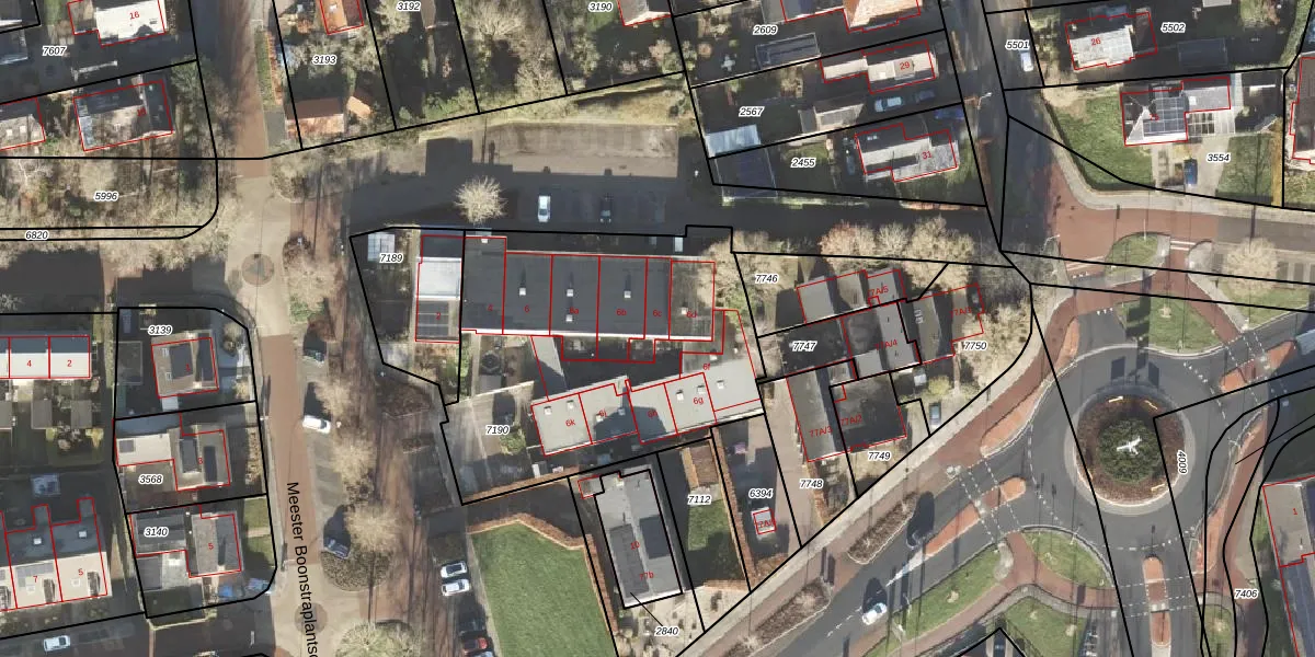Het perceel waarop Meester Boonstraplantsoen 6-c staat heeft een oppervlakte van 1590 m². Dit is een zeer groot perceel. De perceeloppervlakte wordt geregistreerd door het Kadaster. Gedetailleerde informatie over de maten van dit perceel kunt u vinden in het rapport Kadastrale kaart met maatvoering van Meester Boonstraplantsoen 6-c.