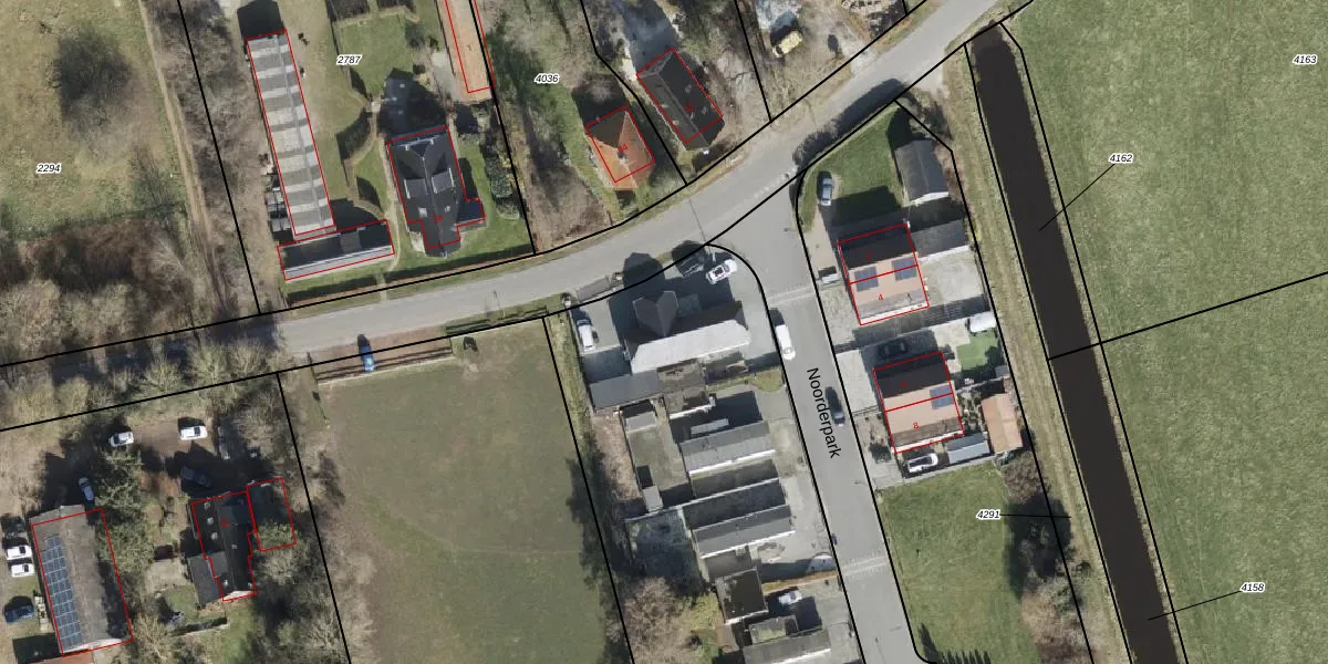 Het perceel waarop Noorderpark 1 staat heeft een oppervlakte van 7310 m². Dit is een zeer groot perceel. De perceeloppervlakte wordt geregistreerd door het Kadaster. Gedetailleerde informatie over de maten van dit perceel kunt u vinden in het rapport Kadastrale kaart met maatvoering van Noorderpark 1.