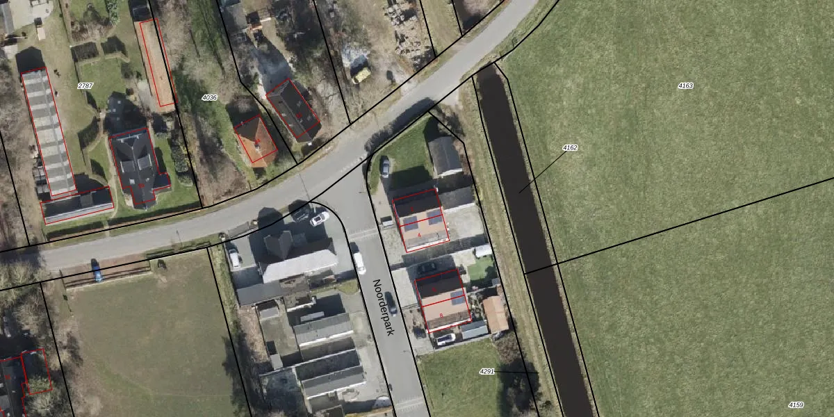 Het perceel waarop Noorderpark 2 staat heeft een oppervlakte van 7310 m². Dit is een zeer groot perceel. De perceeloppervlakte wordt geregistreerd door het Kadaster. Gedetailleerde informatie over de maten van dit perceel kunt u vinden in het rapport Kadastrale kaart met maatvoering van Noorderpark 2.