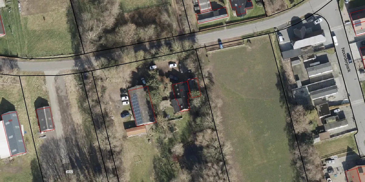 Het perceel waarop Noorderweg 31 staat heeft een oppervlakte van 1,1 ha. Dit is een zeer groot perceel. De perceeloppervlakte wordt geregistreerd door het Kadaster. Gedetailleerde informatie over de maten van dit perceel kunt u vinden in het rapport Kadastrale kaart met maatvoering van Noorderweg 31.