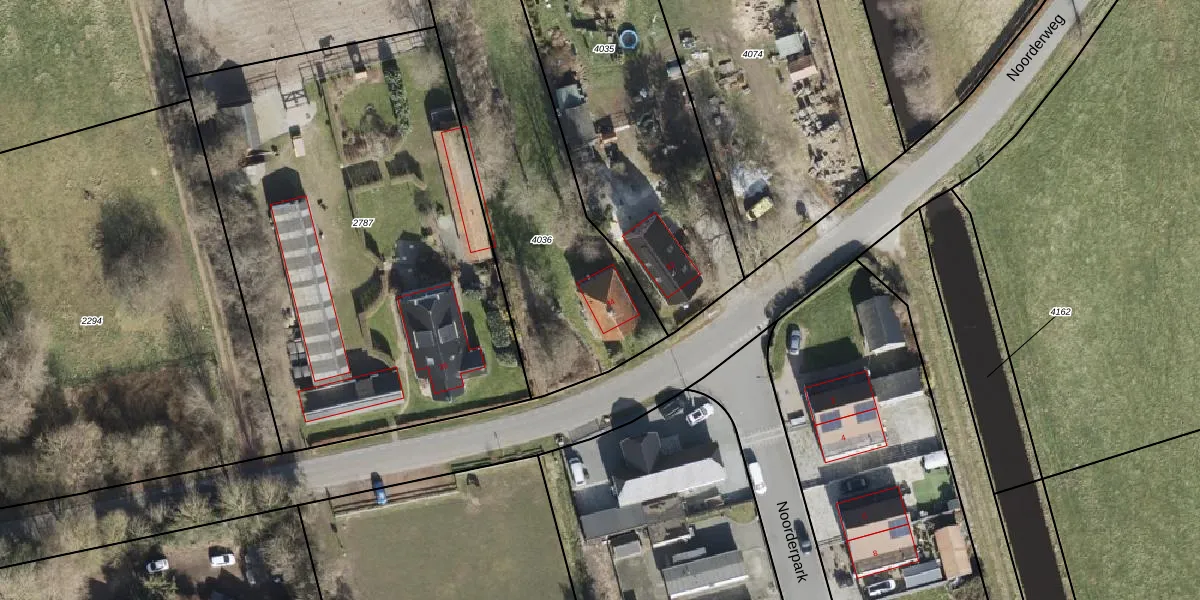 Het perceel waarop Noorderweg 34 staat heeft een oppervlakte van 1378 m². Dit is een zeer groot perceel. De perceeloppervlakte wordt geregistreerd door het Kadaster. Gedetailleerde informatie over de maten van dit perceel kunt u vinden in het rapport Kadastrale kaart met maatvoering van Noorderweg 34.