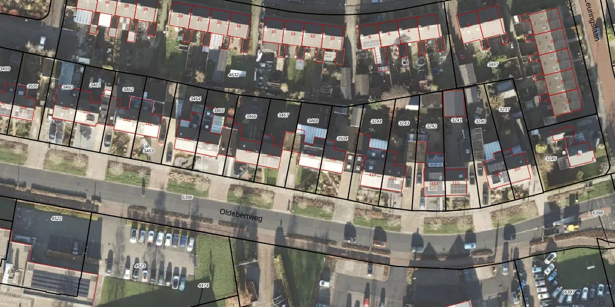 Het perceel waarop Oldebertweg 121 staat heeft een oppervlakte van 302 m². Dit is een groot perceel. De perceeloppervlakte wordt geregistreerd door het Kadaster. Gedetailleerde informatie over de maten van dit perceel kunt u vinden in het rapport Kadastrale kaart met maatvoering van Oldebertweg 121.