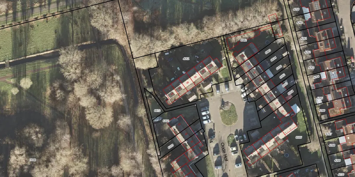 Oude Hof 46 is gelegen op kadastraal perceel LEE01H4051. Deze kadastrale aanduiding is uniek en wordt gebruikt door het Kadaster om eigendomsrechten en andere zakelijke rechten vast te leggen. Het perceel maakt onderdeel uit van de kadastrale gemeente Leek.