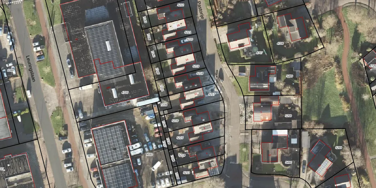 Pastorije 10 is gelegen op kadastraal perceel LEE01H5217. Deze kadastrale aanduiding is uniek en wordt gebruikt door het Kadaster om eigendomsrechten en andere zakelijke rechten vast te leggen. Het perceel maakt onderdeel uit van de kadastrale gemeente Leek.
