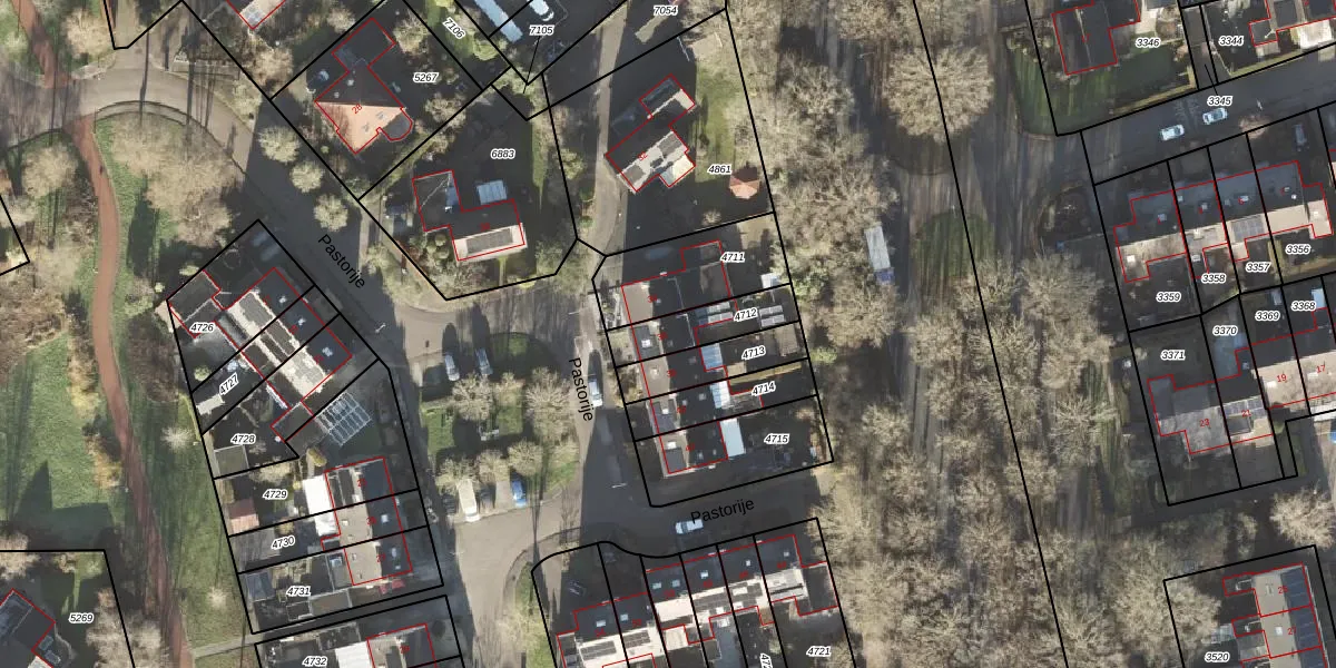 Het perceel waarop Pastorije 36 staat heeft een oppervlakte van 163 m². Dit is een middelgroot perceel. De perceeloppervlakte wordt geregistreerd door het Kadaster. Gedetailleerde informatie over de maten van dit perceel kunt u vinden in het rapport Kadastrale kaart met maatvoering van Pastorije 36.