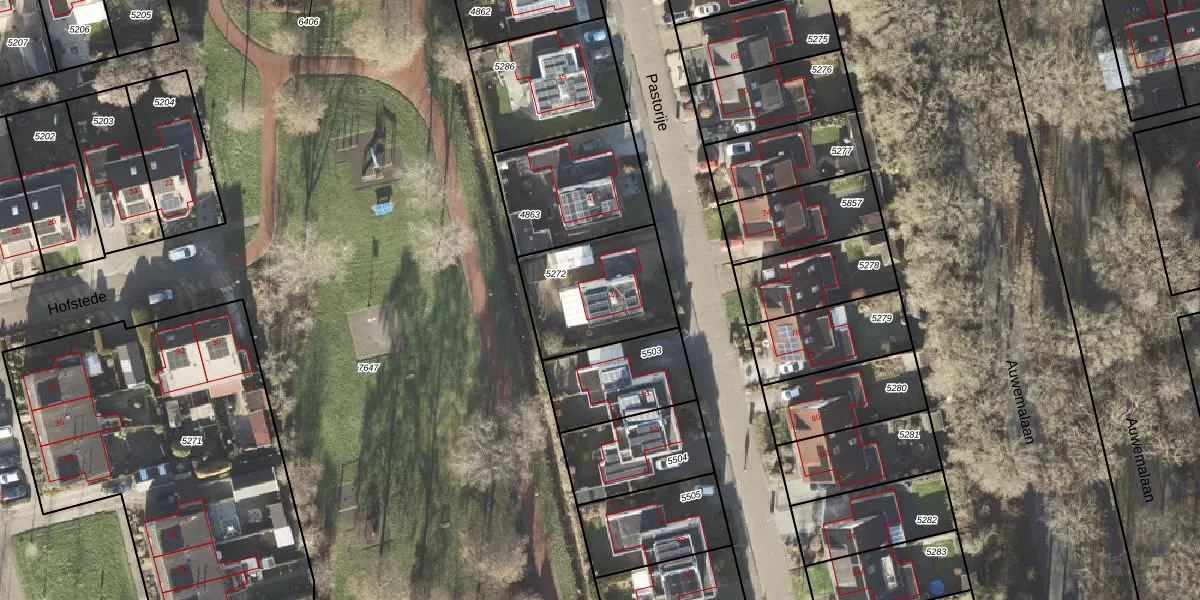Gebruik de zoekbalk of klik op een perceel voor informatie over de adressen binnen dit perceel.