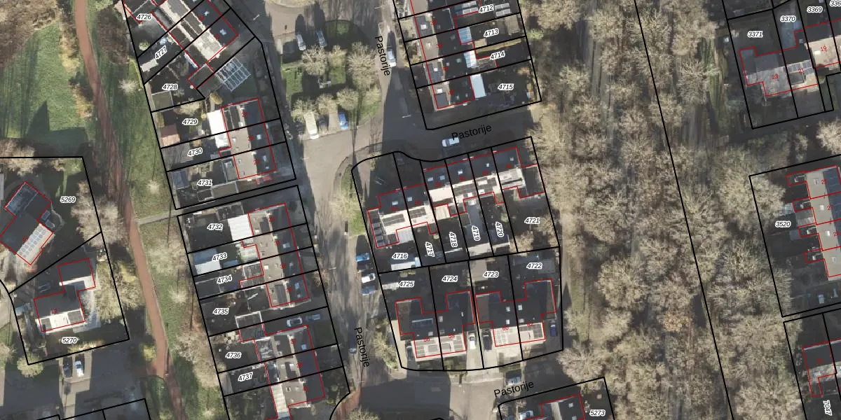 Het perceel waarop Pastorije 52 staat heeft een oppervlakte van 156 m². Dit is een middelgroot perceel. De perceeloppervlakte wordt geregistreerd door het Kadaster. Gedetailleerde informatie over de maten van dit perceel kunt u vinden in het rapport Kadastrale kaart met maatvoering van Pastorije 52.