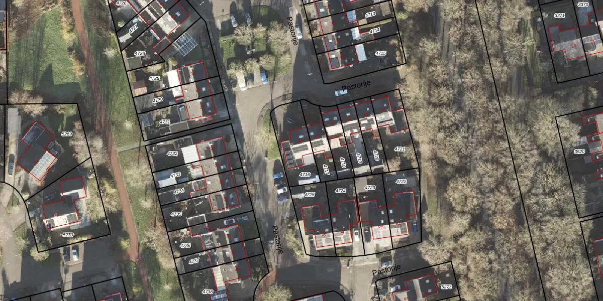 Het perceel waarop Pastorije 54 staat heeft een oppervlakte van 289 m². Dit is een middelgroot perceel. De perceeloppervlakte wordt geregistreerd door het Kadaster. Gedetailleerde informatie over de maten van dit perceel kunt u vinden in het rapport Kadastrale kaart met maatvoering van Pastorije 54.