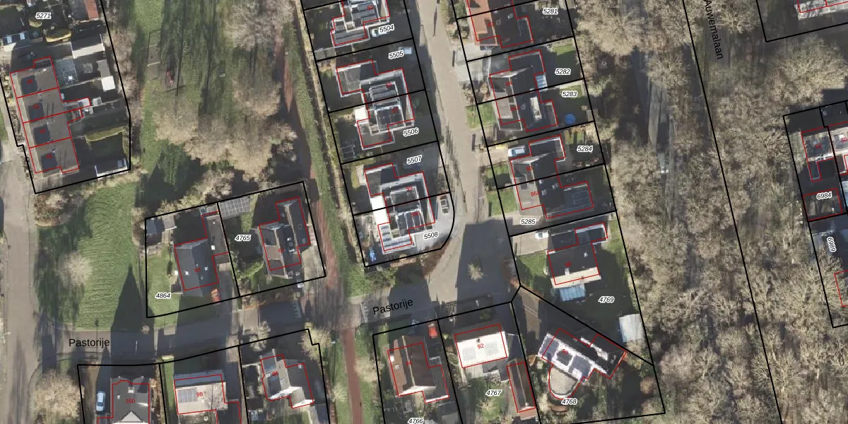 Gebruik de zoekbalk of klik op een perceel voor informatie over de adressen binnen dit perceel.