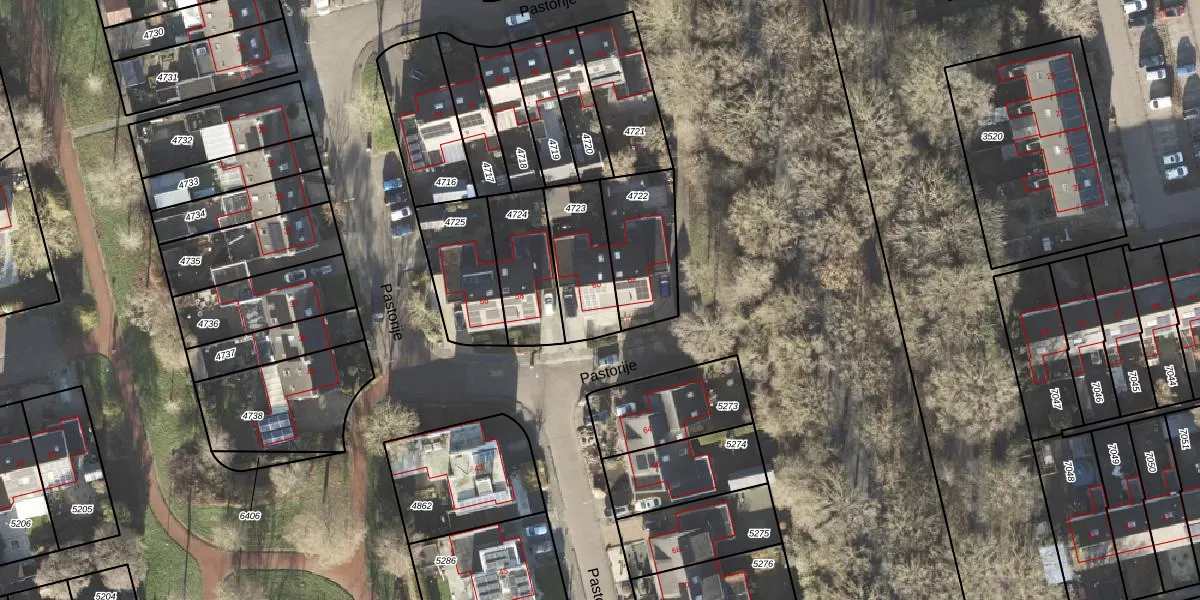 Het perceel waarop Pastorije 60 staat heeft een oppervlakte van 246 m². Dit is een middelgroot perceel. De perceeloppervlakte wordt geregistreerd door het Kadaster. Gedetailleerde informatie over de maten van dit perceel kunt u vinden in het rapport Kadastrale kaart met maatvoering van Pastorije 60.