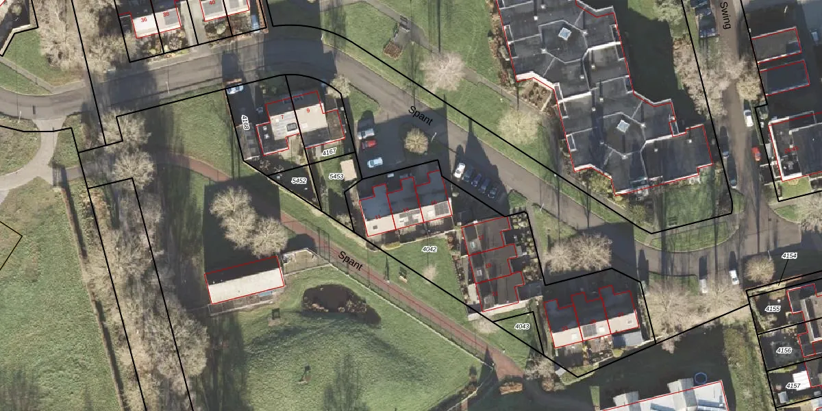 Het perceel waarop Spant 13 staat heeft een oppervlakte van 1648 m². Dit is een zeer groot perceel. De perceeloppervlakte wordt geregistreerd door het Kadaster. Gedetailleerde informatie over de maten van dit perceel kunt u vinden in het rapport Kadastrale kaart met maatvoering van Spant 13.