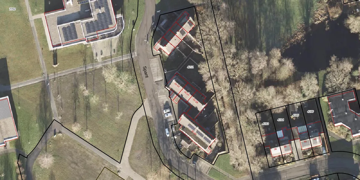 Het perceel waarop Spant 14 staat heeft een oppervlakte van 2115 m². Dit is een zeer groot perceel. De perceeloppervlakte wordt geregistreerd door het Kadaster. Gedetailleerde informatie over de maten van dit perceel kunt u vinden in het rapport Kadastrale kaart met maatvoering van Spant 14.