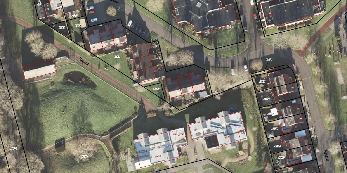 Het perceel waarop Spant 23 staat heeft een oppervlakte van 1648 m². Dit is een zeer groot perceel. De perceeloppervlakte wordt geregistreerd door het Kadaster. Gedetailleerde informatie over de maten van dit perceel kunt u vinden in het rapport Kadastrale kaart met maatvoering van Spant 23.