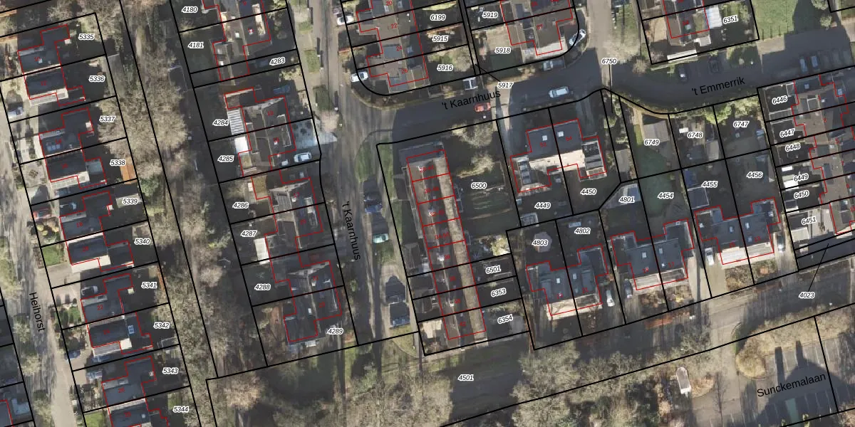 't Kaarnhuus 32 is gelegen op kadastraal perceel LEE01H6500. Deze kadastrale aanduiding is uniek en wordt gebruikt door het Kadaster om eigendomsrechten en andere zakelijke rechten vast te leggen. Het perceel maakt onderdeel uit van de kadastrale gemeente Leek.