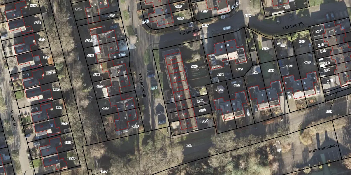 't Kaarnhuus 34 is gelegen op kadastraal perceel LEE01H6500. Deze kadastrale aanduiding is uniek en wordt gebruikt door het Kadaster om eigendomsrechten en andere zakelijke rechten vast te leggen. Het perceel maakt onderdeel uit van de kadastrale gemeente Leek.
