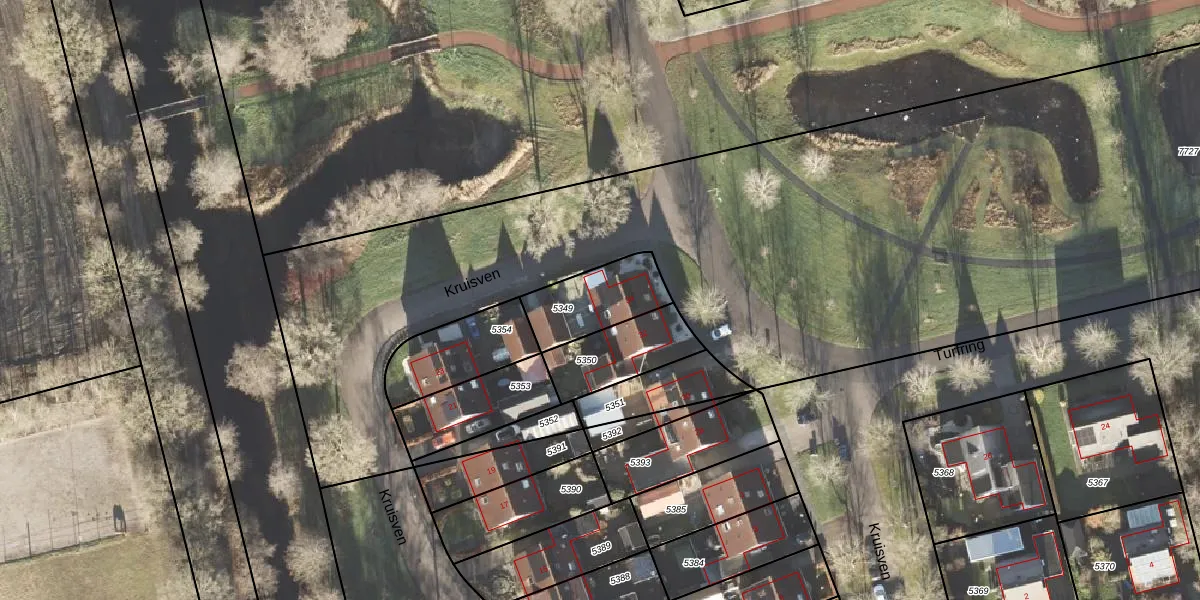 Turfring 34 is gelegen op kadastraal perceel LEE01H5349. Deze kadastrale aanduiding is uniek en wordt gebruikt door het Kadaster om eigendomsrechten en andere zakelijke rechten vast te leggen. Het perceel maakt onderdeel uit van de kadastrale gemeente Leek.