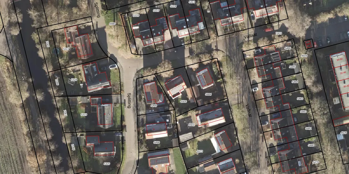 Vallaat 10 is gelegen op kadastraal perceel LEE01H5500. Deze kadastrale aanduiding is uniek en wordt gebruikt door het Kadaster om eigendomsrechten en andere zakelijke rechten vast te leggen. Het perceel maakt onderdeel uit van de kadastrale gemeente Leek.
