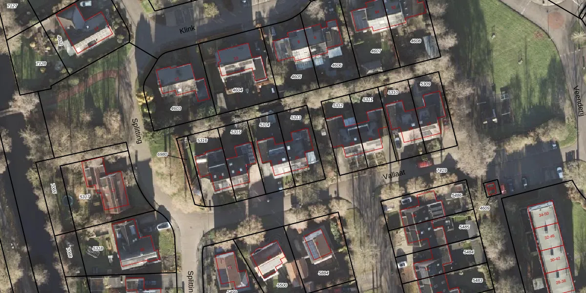Vallaat 25 is gelegen op kadastraal perceel LEE01H5313. Deze kadastrale aanduiding is uniek en wordt gebruikt door het Kadaster om eigendomsrechten en andere zakelijke rechten vast te leggen. Het perceel maakt onderdeel uit van de kadastrale gemeente Leek.