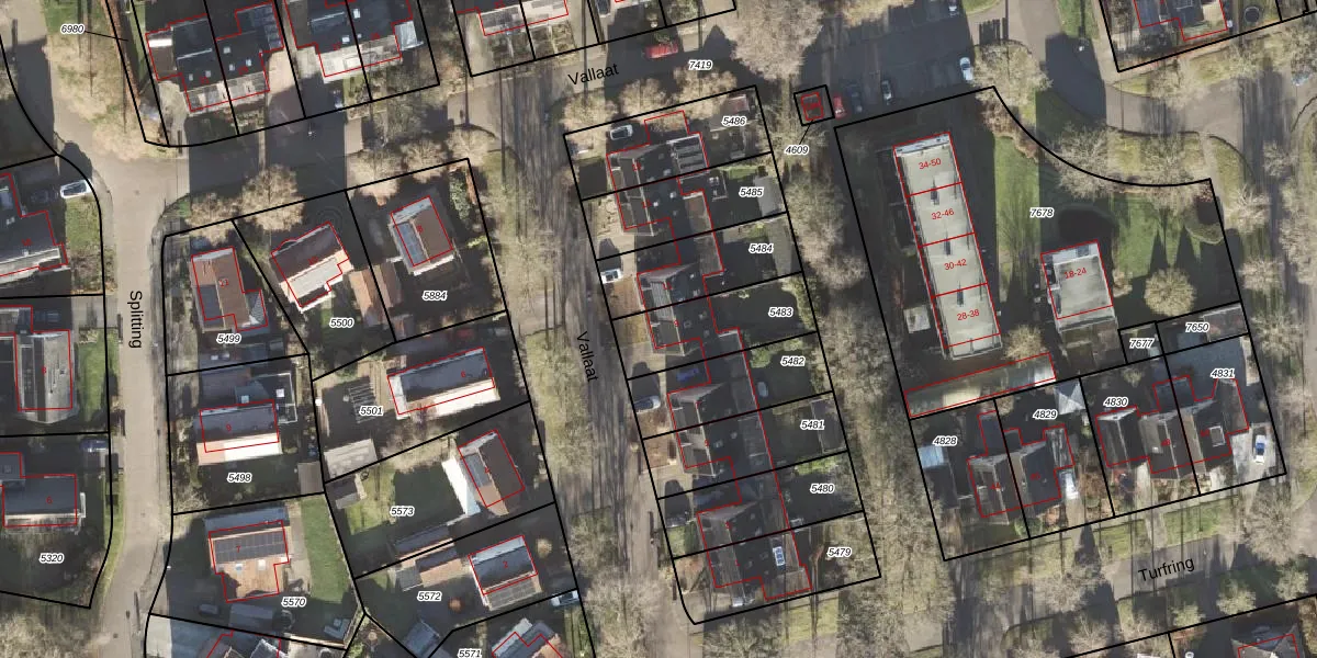 Het perceel waarop Vallaat 9 staat heeft een oppervlakte van 282 m². Dit is een middelgroot perceel. De perceeloppervlakte wordt geregistreerd door het Kadaster. Gedetailleerde informatie over de maten van dit perceel kunt u vinden in het rapport Kadastrale kaart met maatvoering van Vallaat 9.