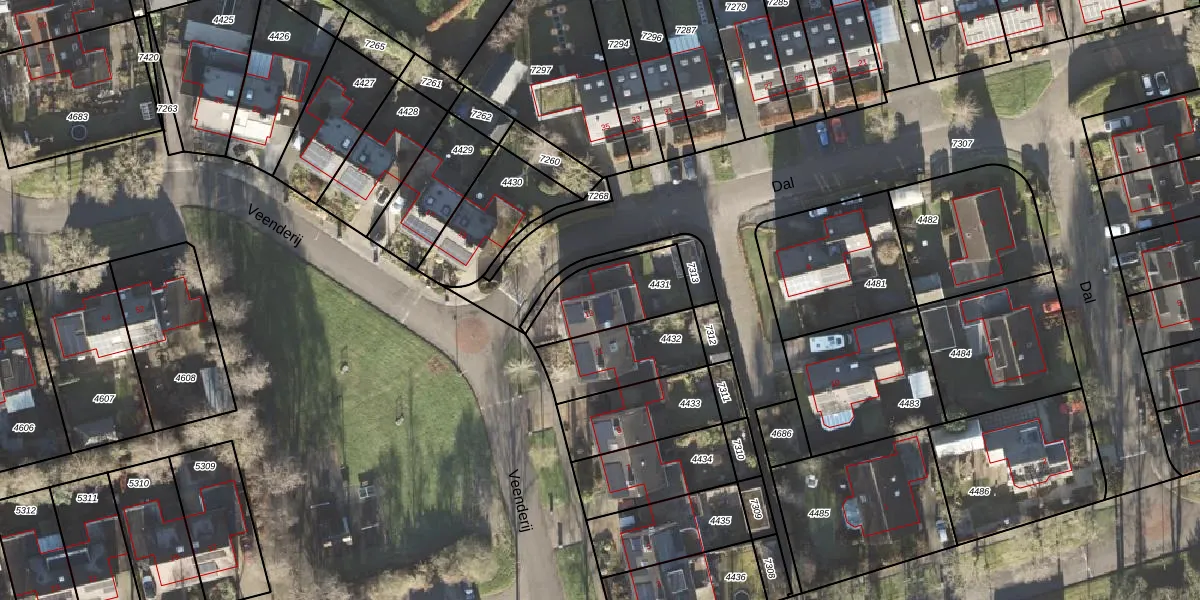 Veenderij 13 is gelegen op kadastraal perceel LEE01H4431. Deze kadastrale aanduiding is uniek en wordt gebruikt door het Kadaster om eigendomsrechten en andere zakelijke rechten vast te leggen. Het perceel maakt onderdeel uit van de kadastrale gemeente Leek.